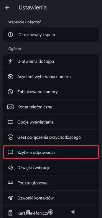 W celu uruchomienia opcji szybkich odpowiedzi SMS w telefonie z systemem Android (np. Xiaomi, Samsung), należy wykonać następujące kroki: